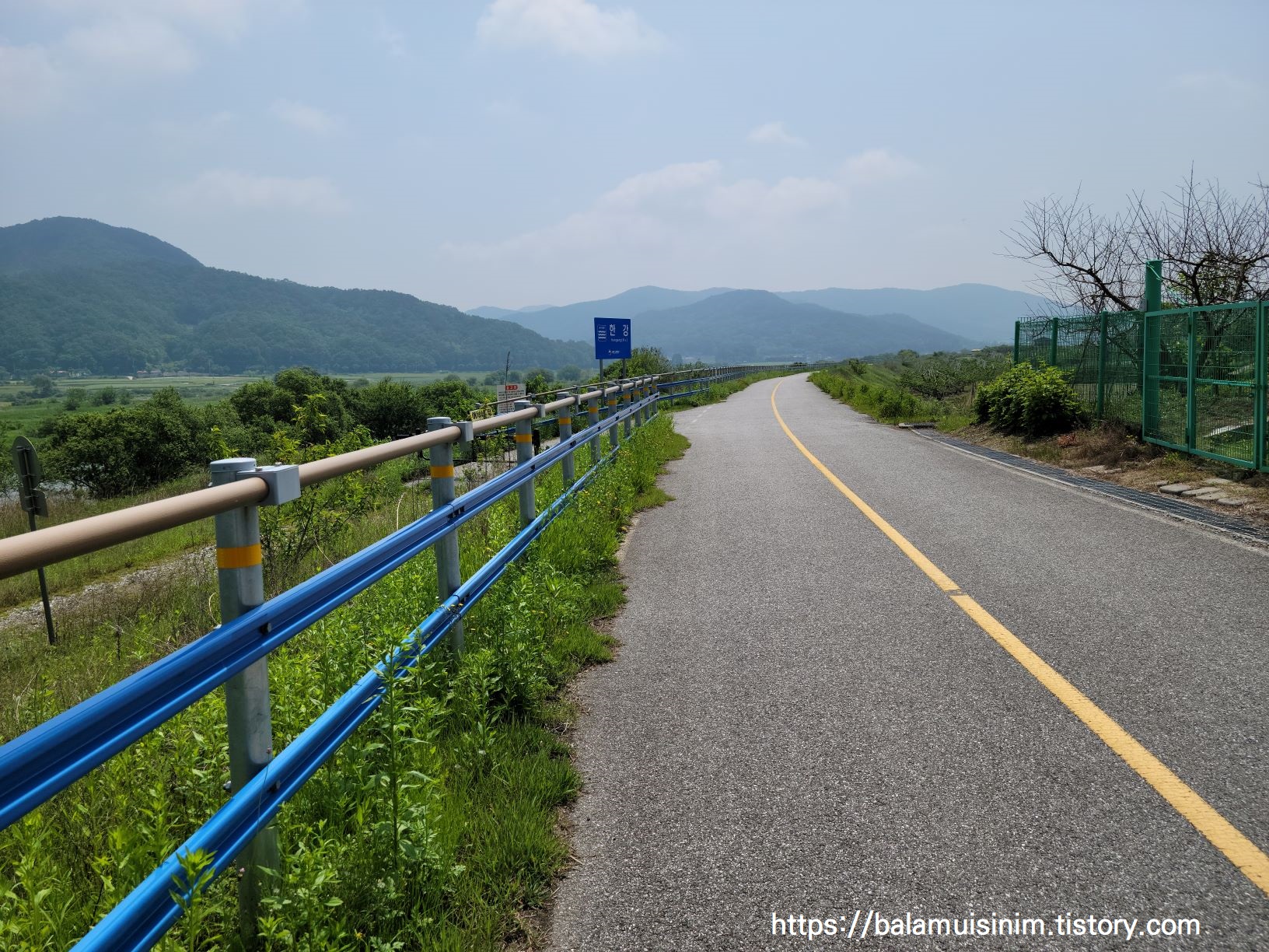 갑자기 자전거길이 끊기고 지방도로가 나와서 좀 당황했다.