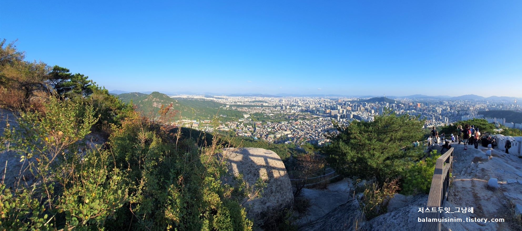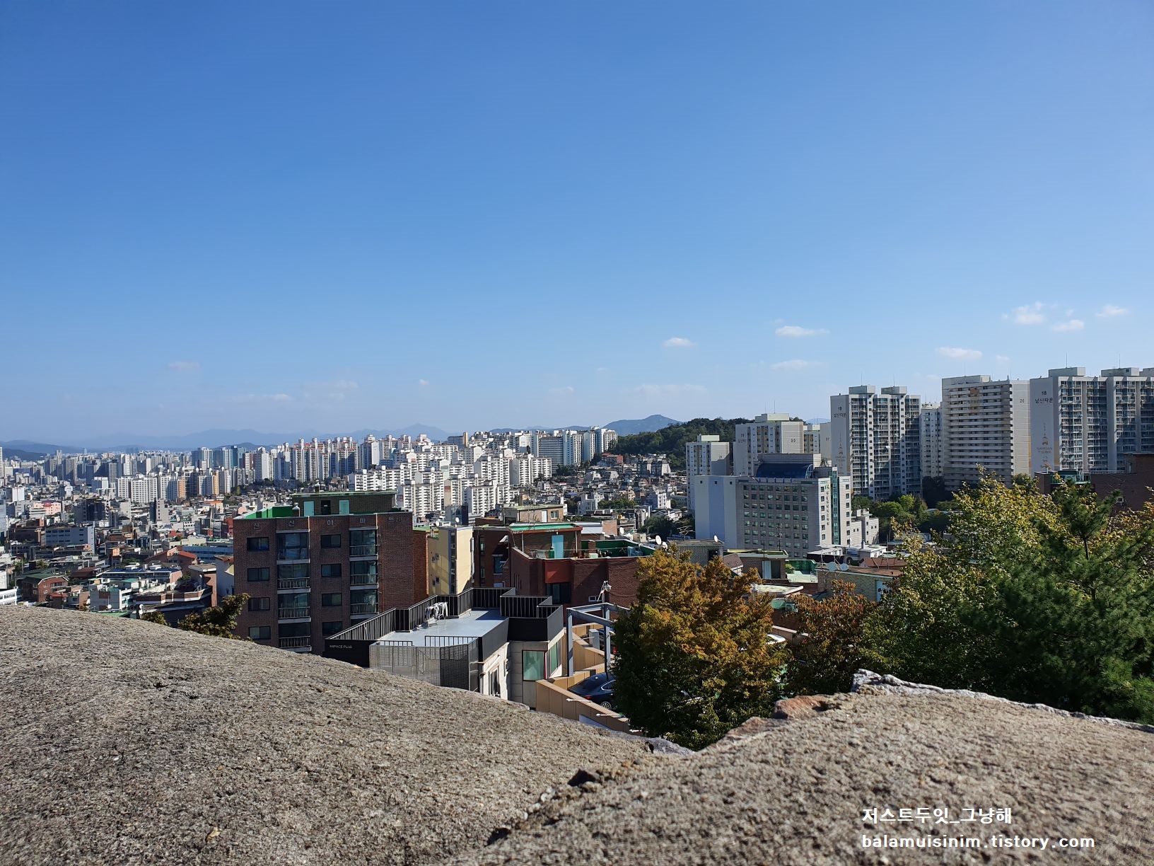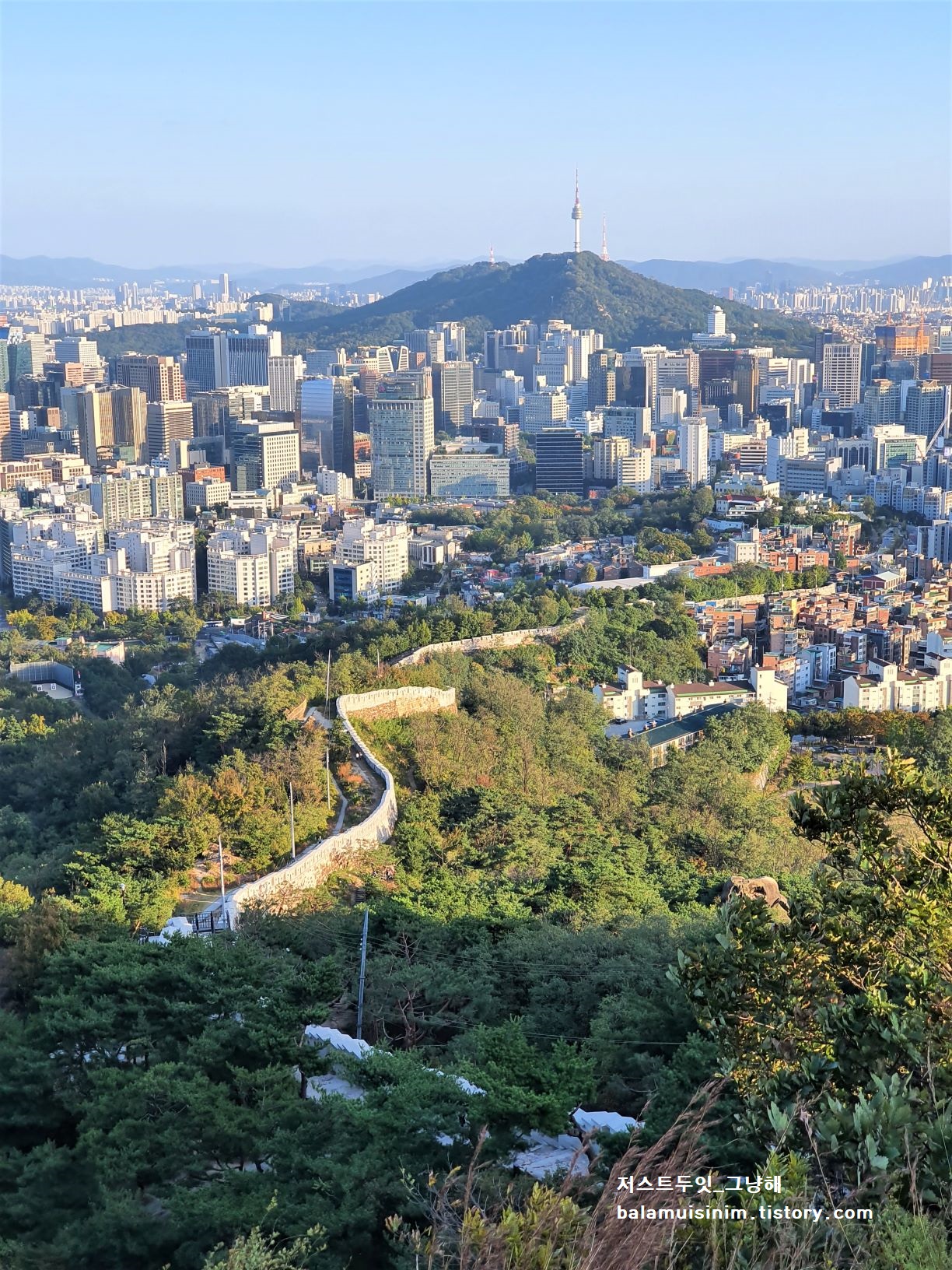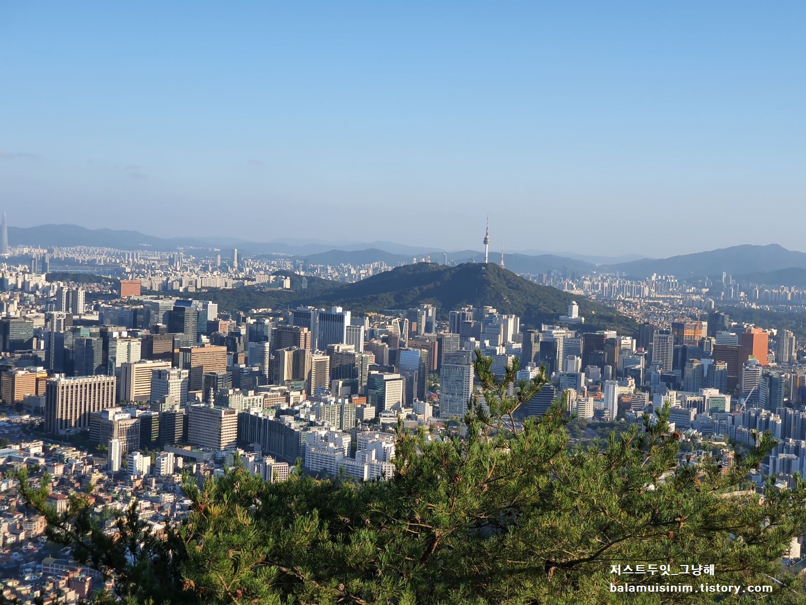 마지막 코스인 인왕산에서 바라본 남산은 조금 더 가까이 보인다.