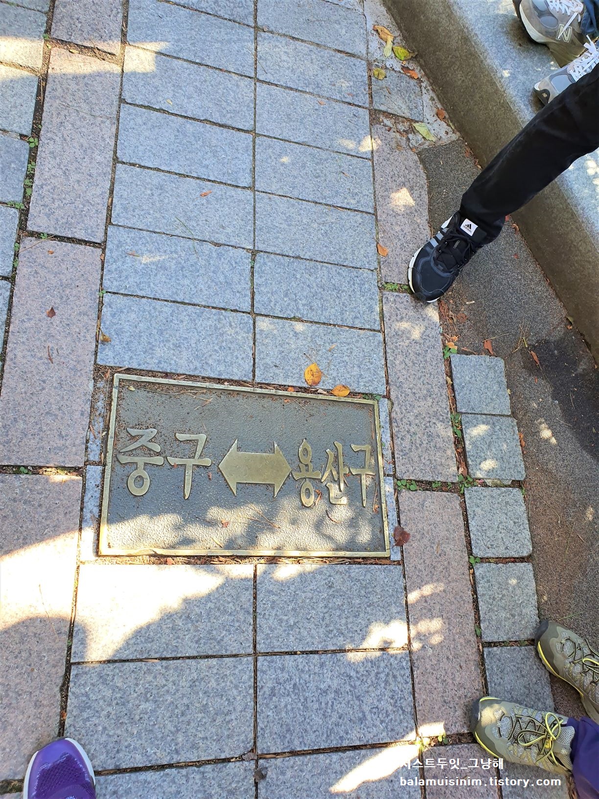 우리나라에서 길바닥에 지역을 같이 이렇게 표기된 거는 처음 보는 거 같은데... 신기하다.