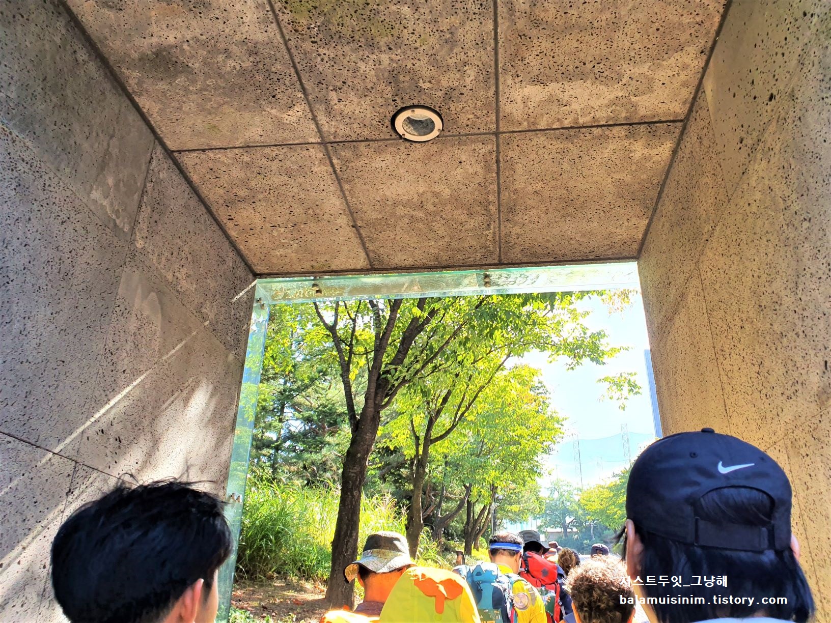 북악산에서 내리막길로 내려와서 창의문안내소에서 탐방로 입장카드를 반납하고 윤동주 문학관을 지나 인왕산