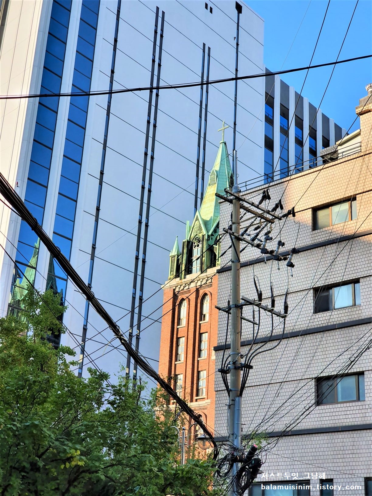 통과하는 영광을 얻게 되었다. 러시아 대사관을 나오자마자 1897년에 지었다는 123년 된 정동 제일교회가 보인다.