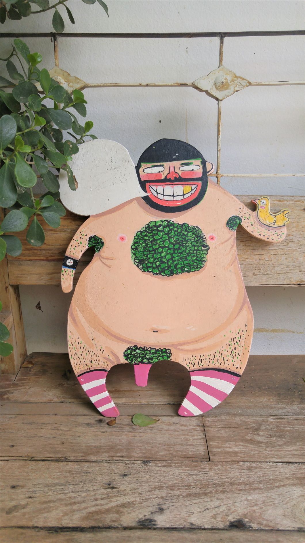종이를 불려서 만든 인형 같은데.... 색감 사용을 과감하게 하고 인형이 매우 익살스러운 게 맘에 든다.