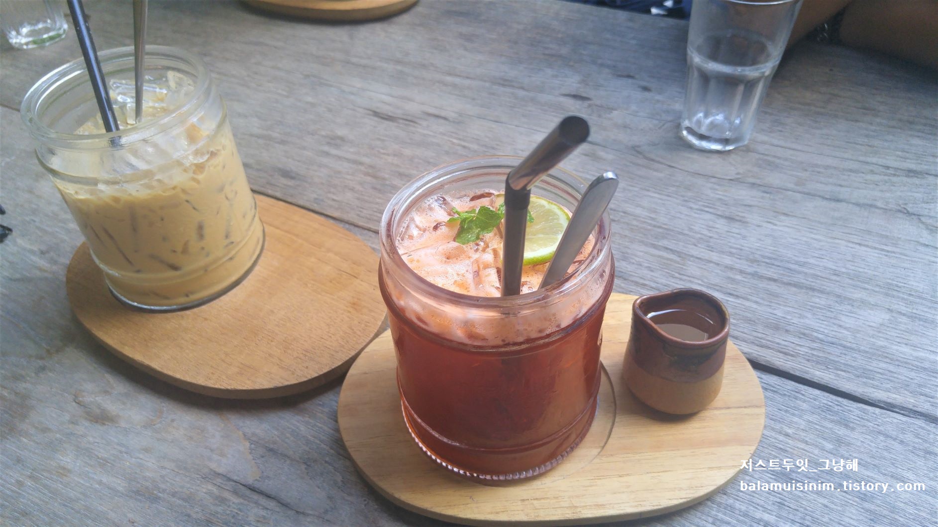 날이 더운관계로 우리 일행은 아이스커피와 석류에이드를 시켜 마신다..