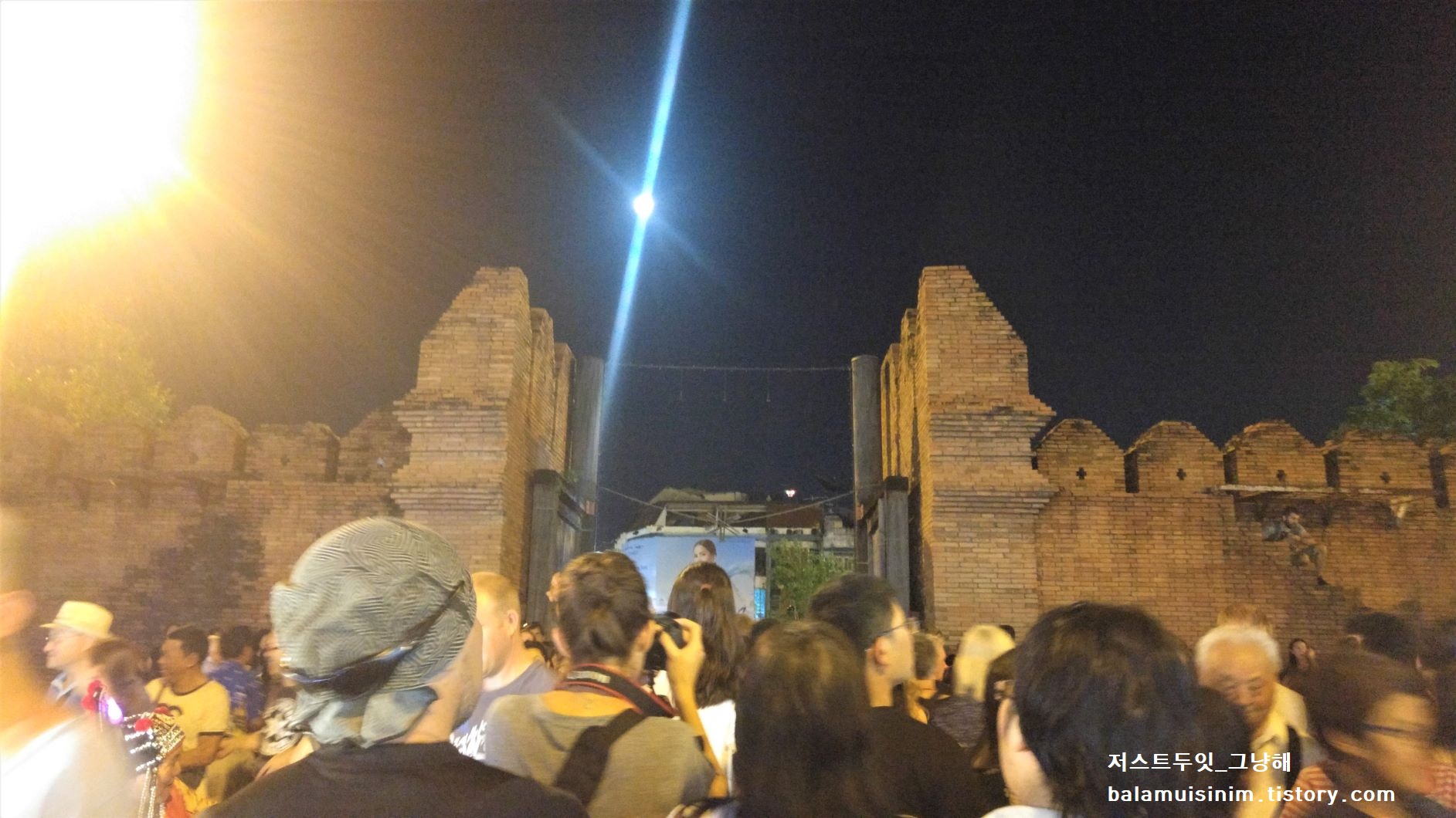 핑강이 가까울수록 걷기가 힘들어질 정도로 많은 사람들이 몰려있다.