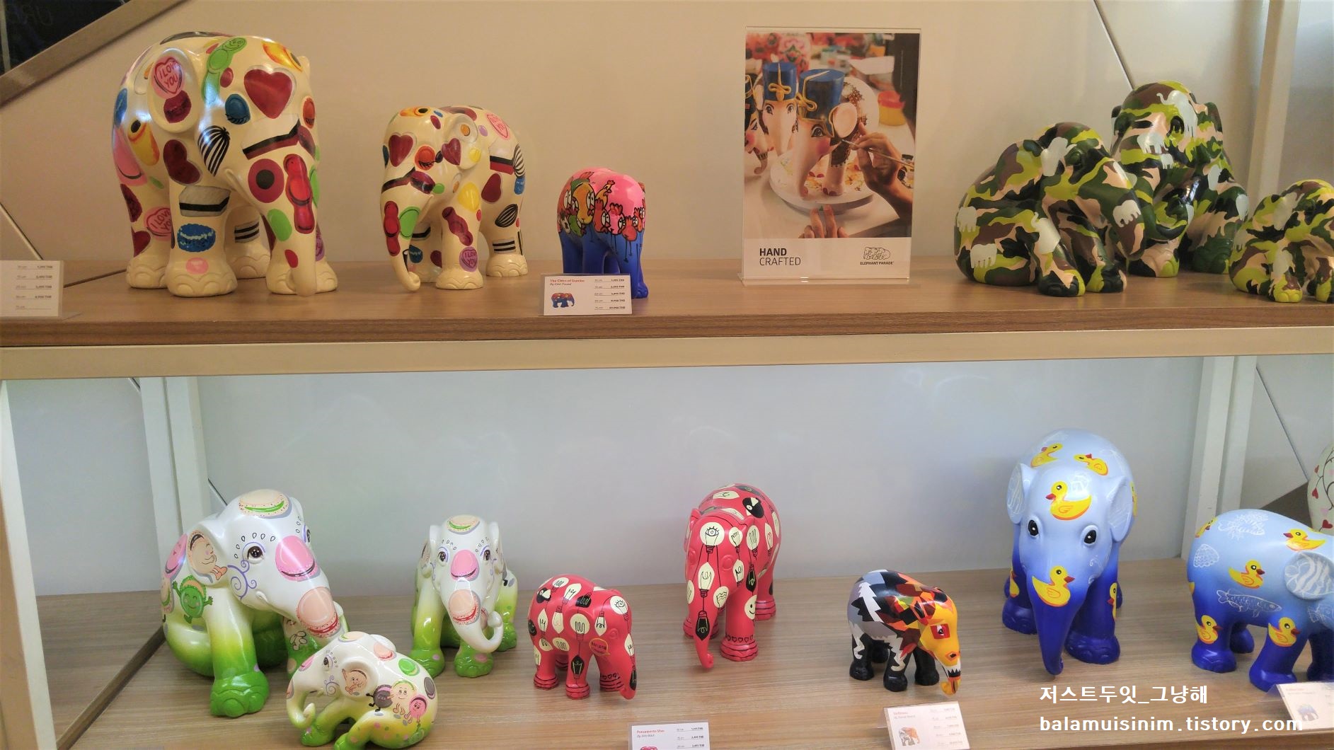직접 다 손으로 그려서 만든 코끼리인데.. 다양한 디장인과 컬러풀한 색상으로 돋보인다.