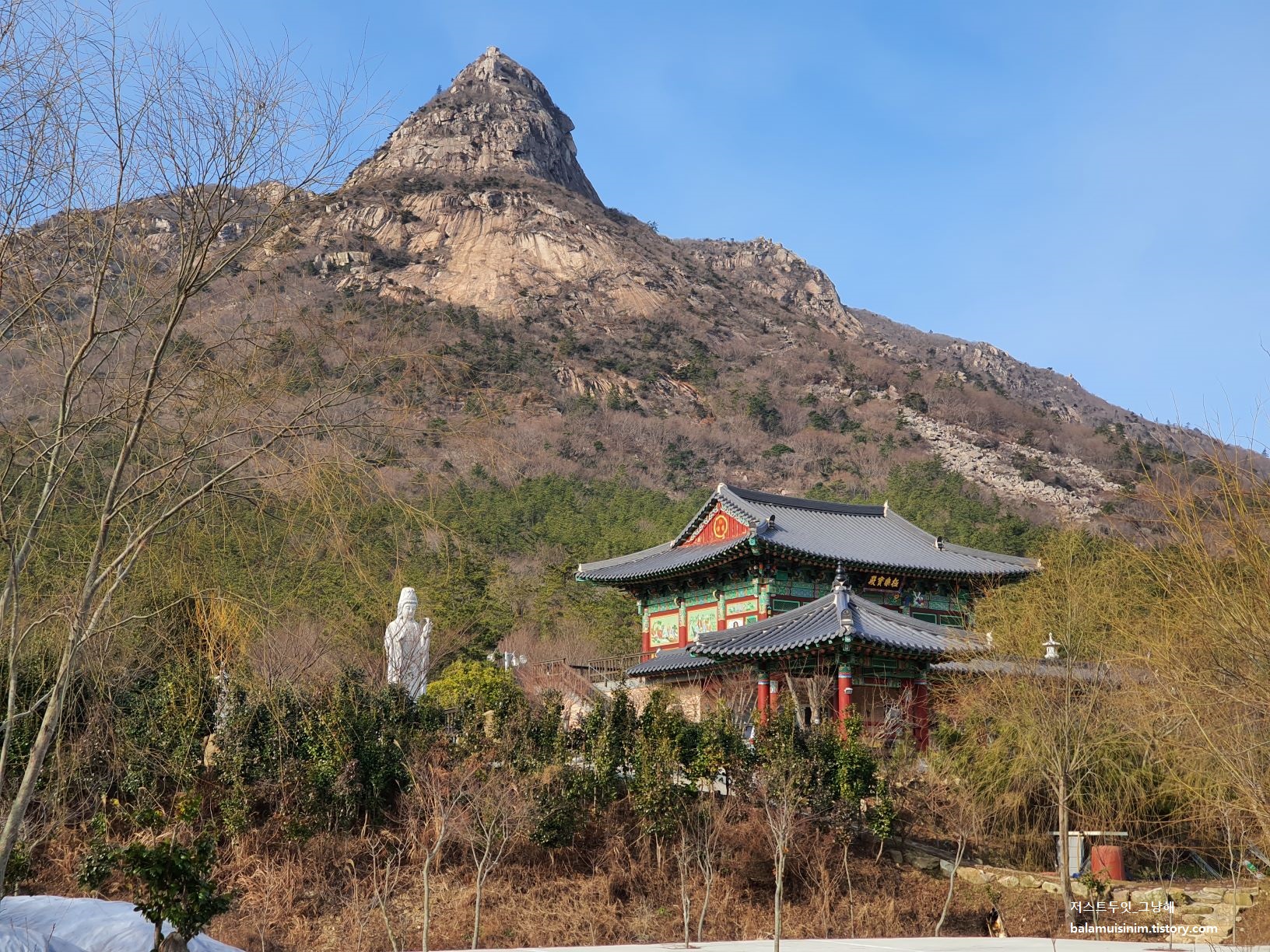 그러다가 멀리 두륜산을 뒤로하고 천하대장군과 지하여장군이 서있는 정수사가 보인다.