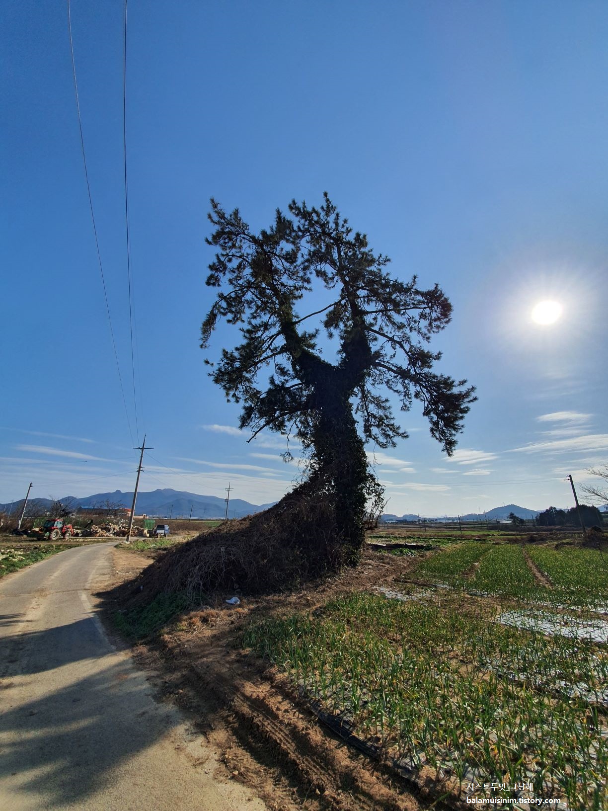 마을 어귀에 넝쿨이 나무를 칭칭 감싸서 집어삼킨 게 저러다 나무가 죽지 싶다.