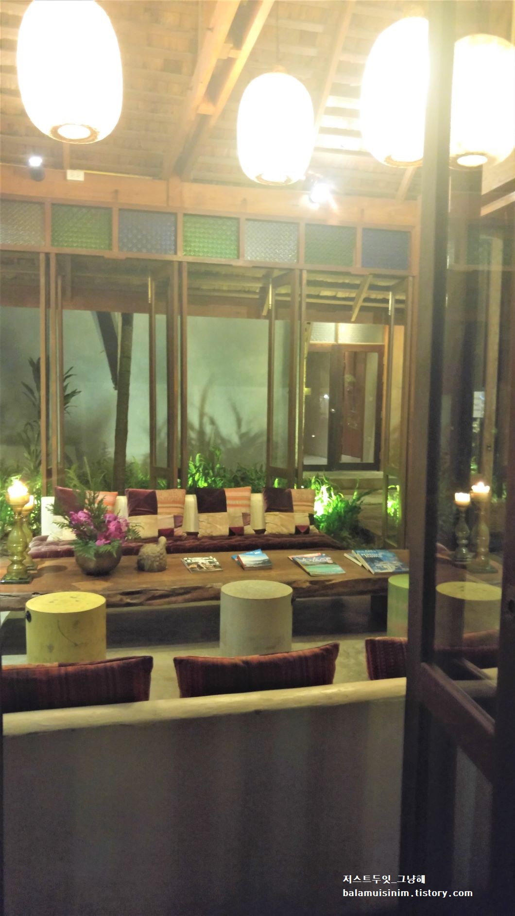 우라 나라의 한옥집 대문을 연상시키는 문을 열고 들어가면 짚으로 엮어서 만든 천장에 선풍기가 돌아가고 있다.
