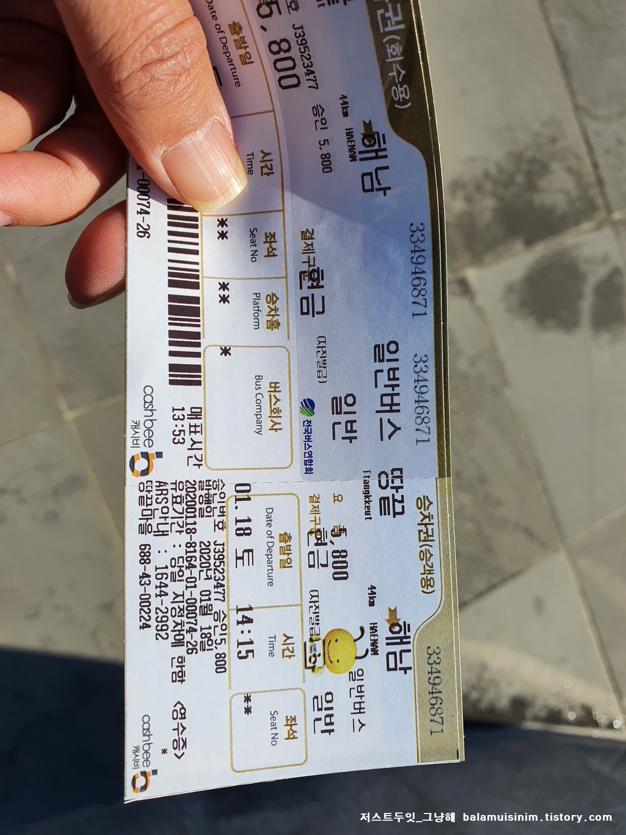 기다리지 않고 버스를 바로 탈 수 있어서 다행이라 생각하며 해남행 버스에 올라탄다.