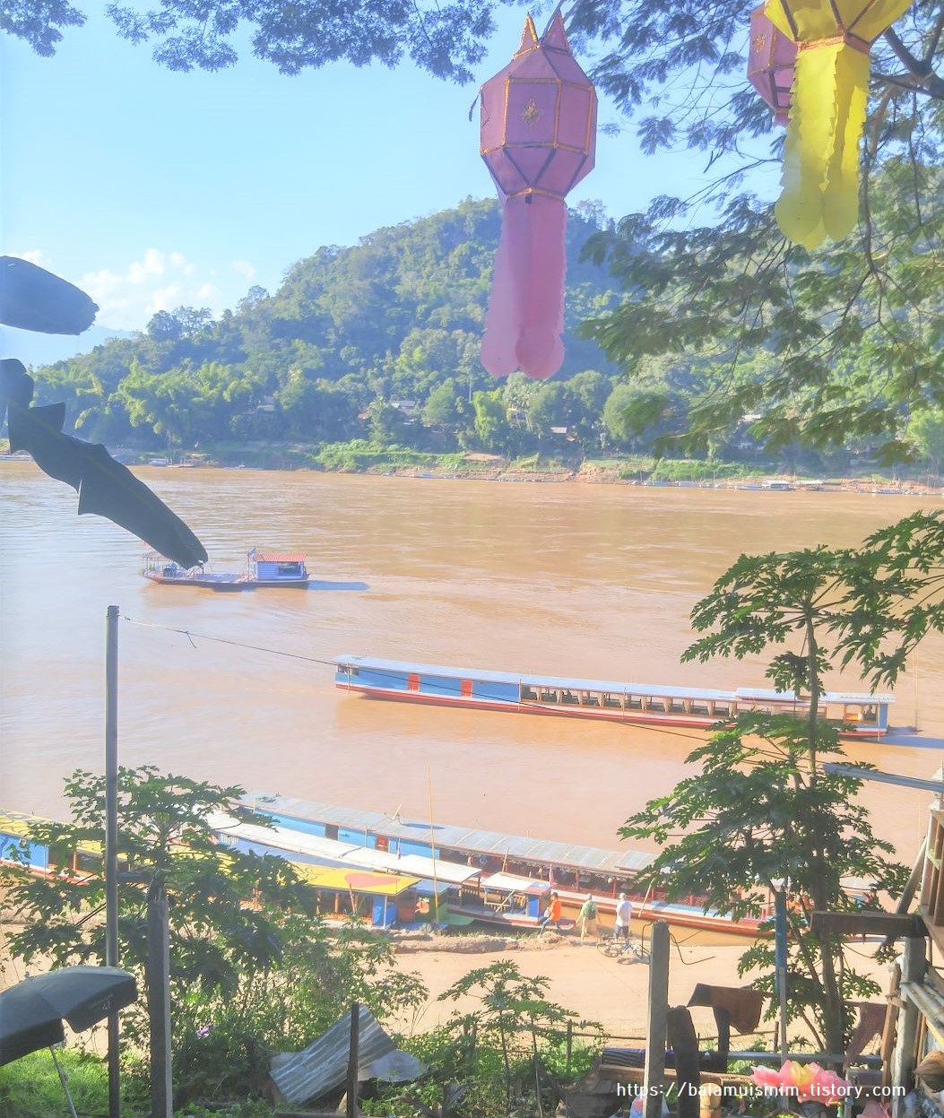 루앙프라방 바로 왼쪽으로 흐르는 강이 메콩강이고 오른쪽에는 남칸강이 흐르는데 메콩강은 강폭도 넓고 물살도 센 편이다. 아마도 만약에 버스를 안 타고 배를 타고 왔다면 치앙콩에서 메콩강으로 배를 타고 와서 이곳 선착장에 어딘가에 내리지 않을까 하는 생각을 해봤다.