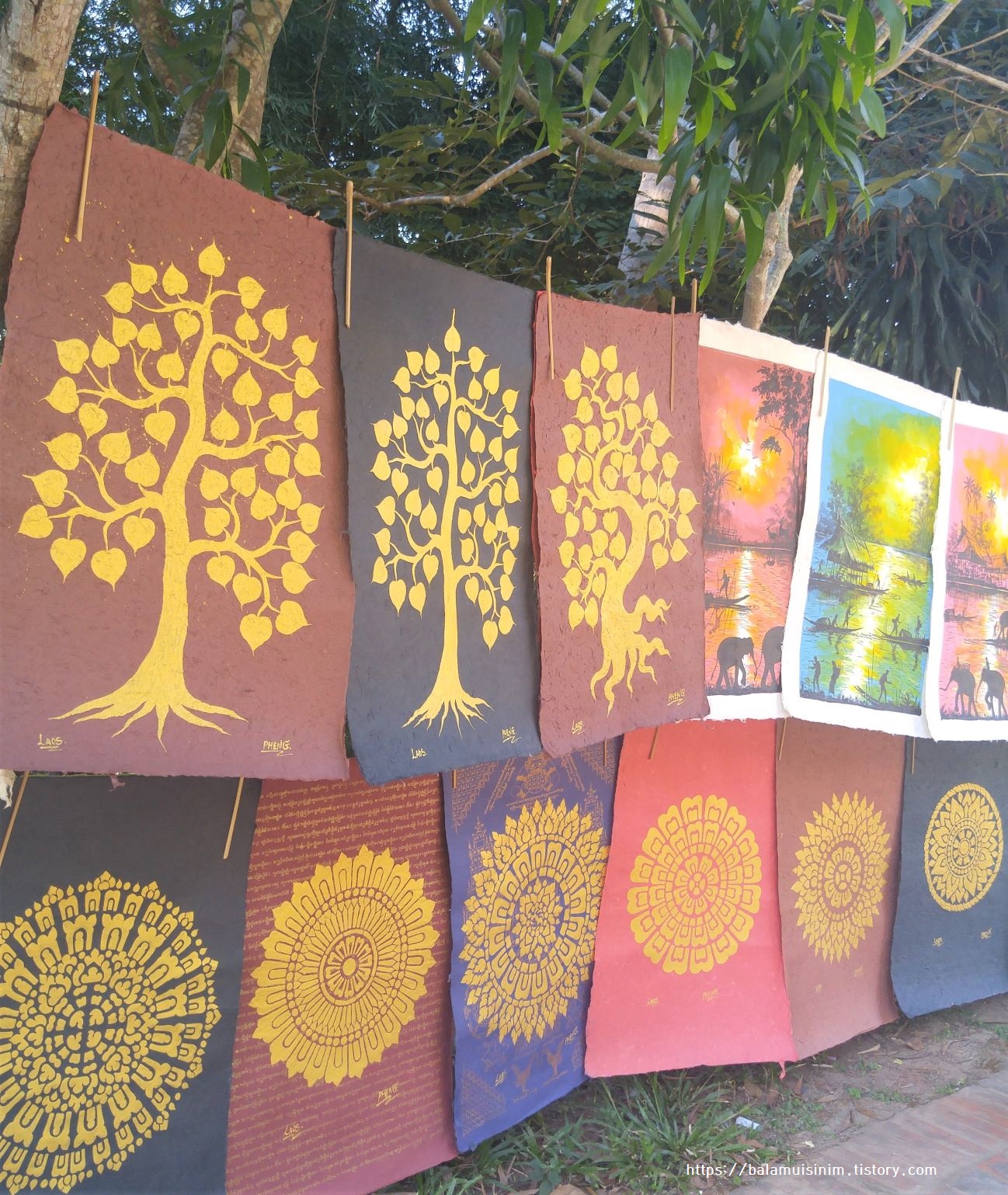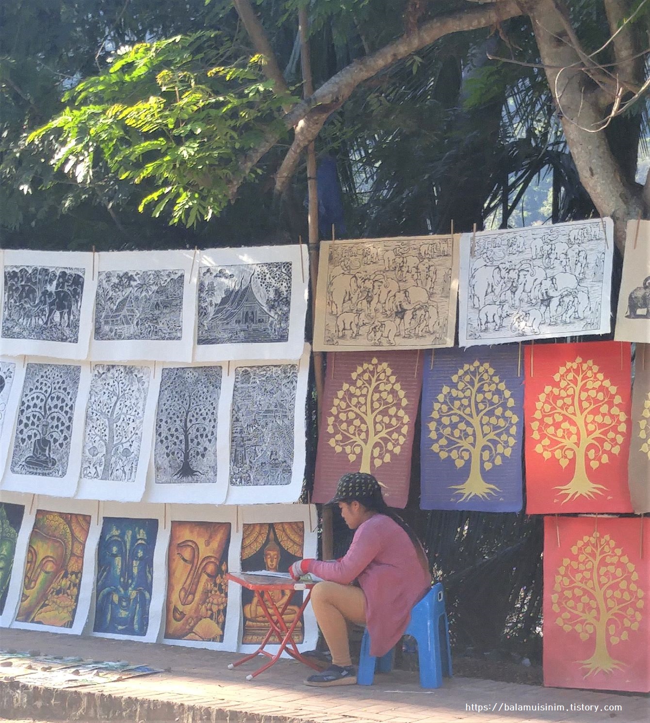 한참 걷다 보면 강가에 판화를 찍어서 파는 노점상이 보인다.