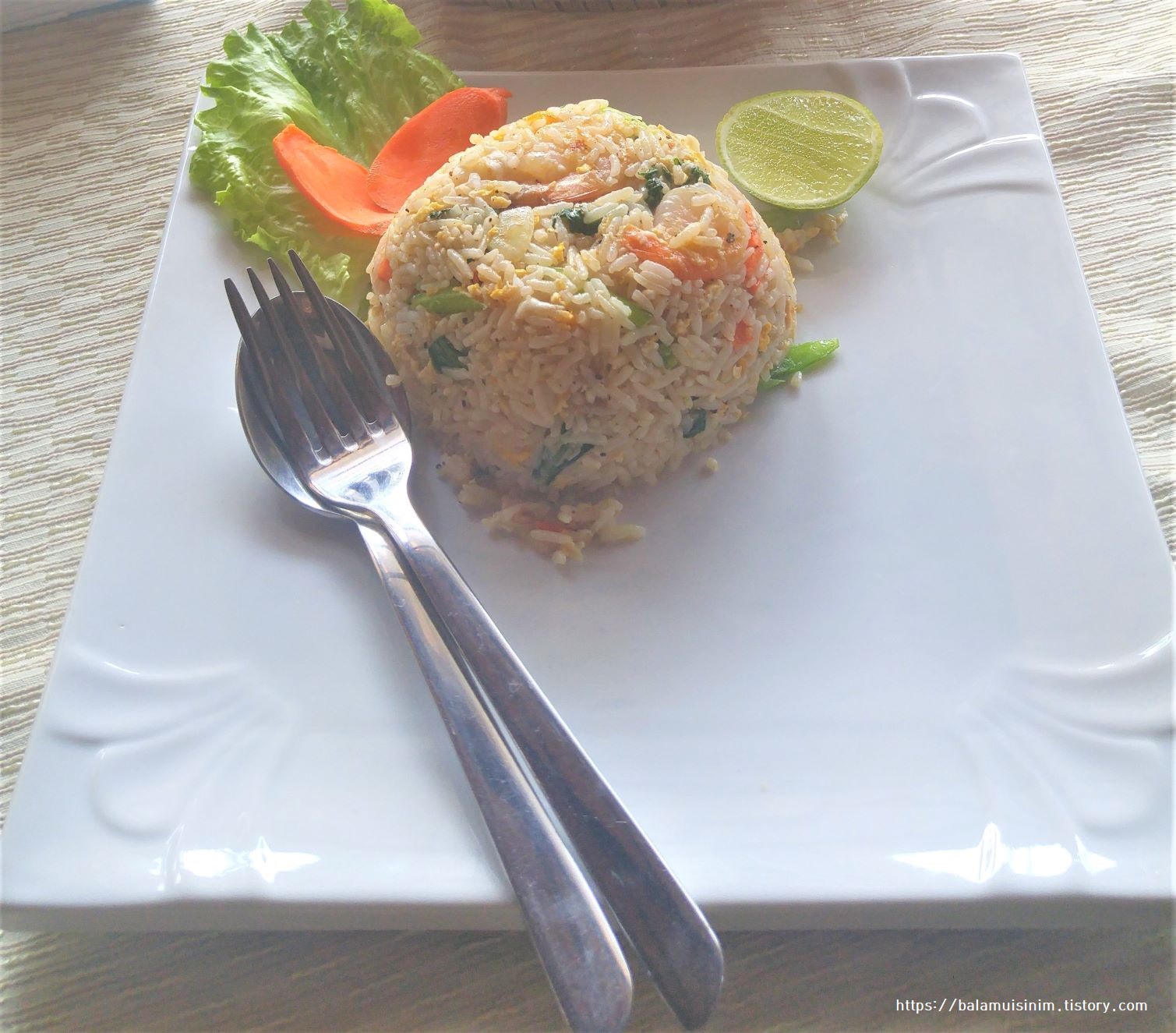 저녁 새우볶음밥 & 그린 아이스티 34,000킵 (4,900원)