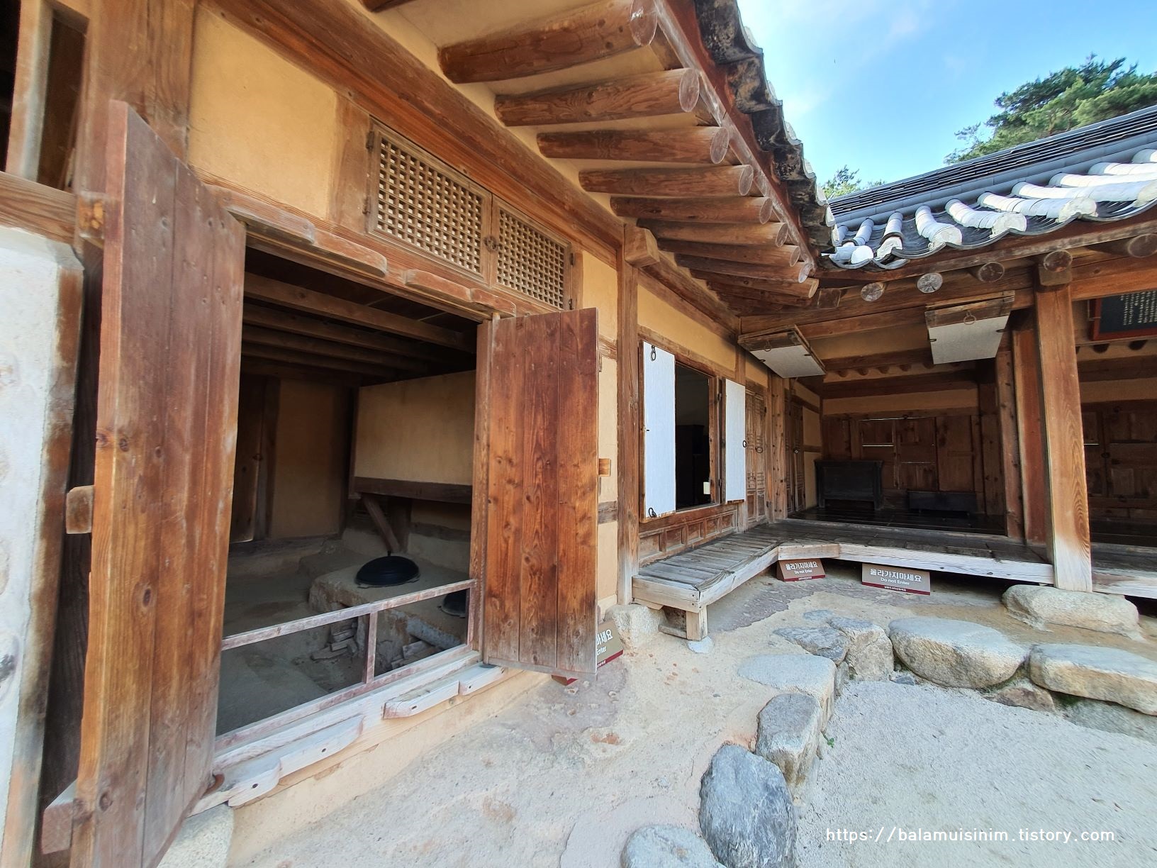 건물 앞뒤에서만 지붕면이 보이고 추녀가 없는 맞배지붕은 측면 지붕을 많이 빼주지 않으면 비바람에 취약한 단점이 있다. 여유당에서는 사랑채의 우진각 지붕과 안채의 맞배지붕 등 둘을 다 사용한 걸 볼 수 있는데 맞배지붕이 있는 곳은 부엌과 광을 사용하는 곳으로 만든 거 같다.